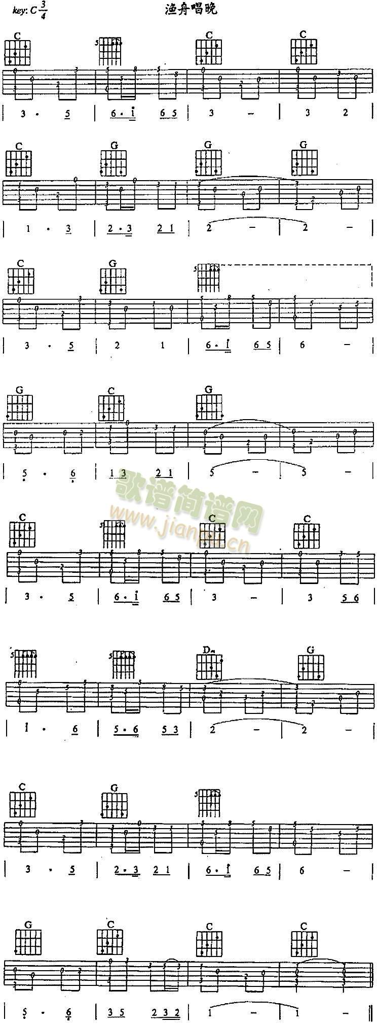 [吉他谱]渔船唱晚(独奏曲) 未知