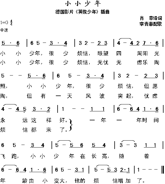 [四字歌谱]小小少年(影片英俊少年插曲) 德国歌曲