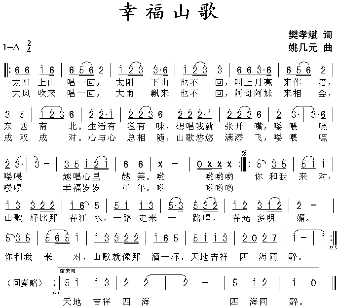 [笛箫谱]山歌 ( 笛子乐谱) (笛子乐谱)