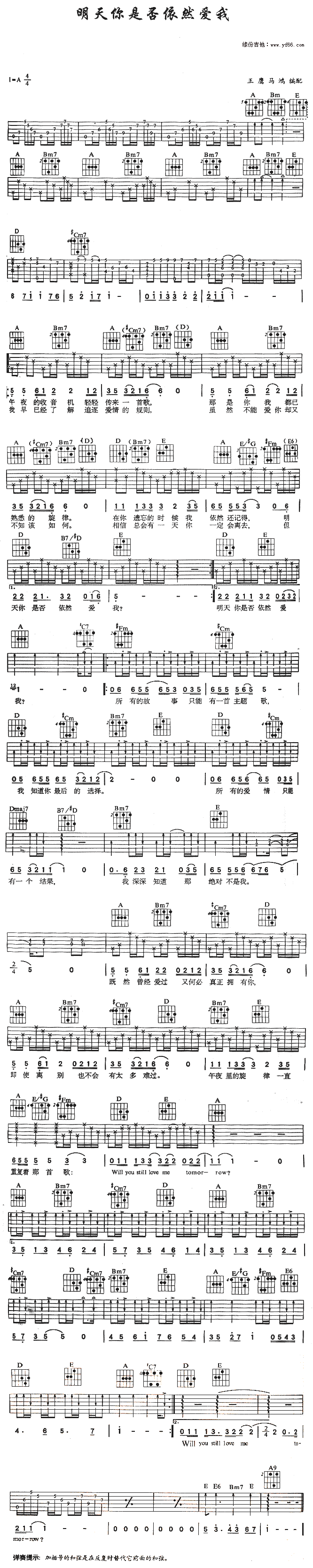 [九字歌谱]明天你是否依然爱我(吉特巴)