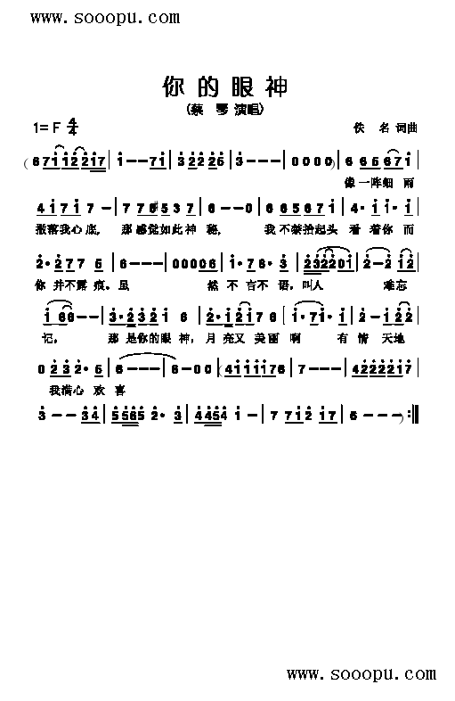 [九字歌谱]你的眼神 歌曲类 简谱 蔡琴