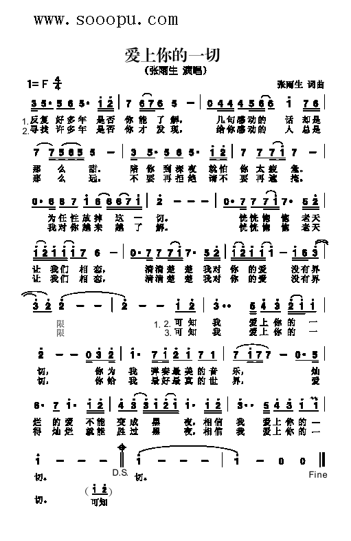 [十字及以上]爱上你的一切 歌曲类 简谱 张雨生