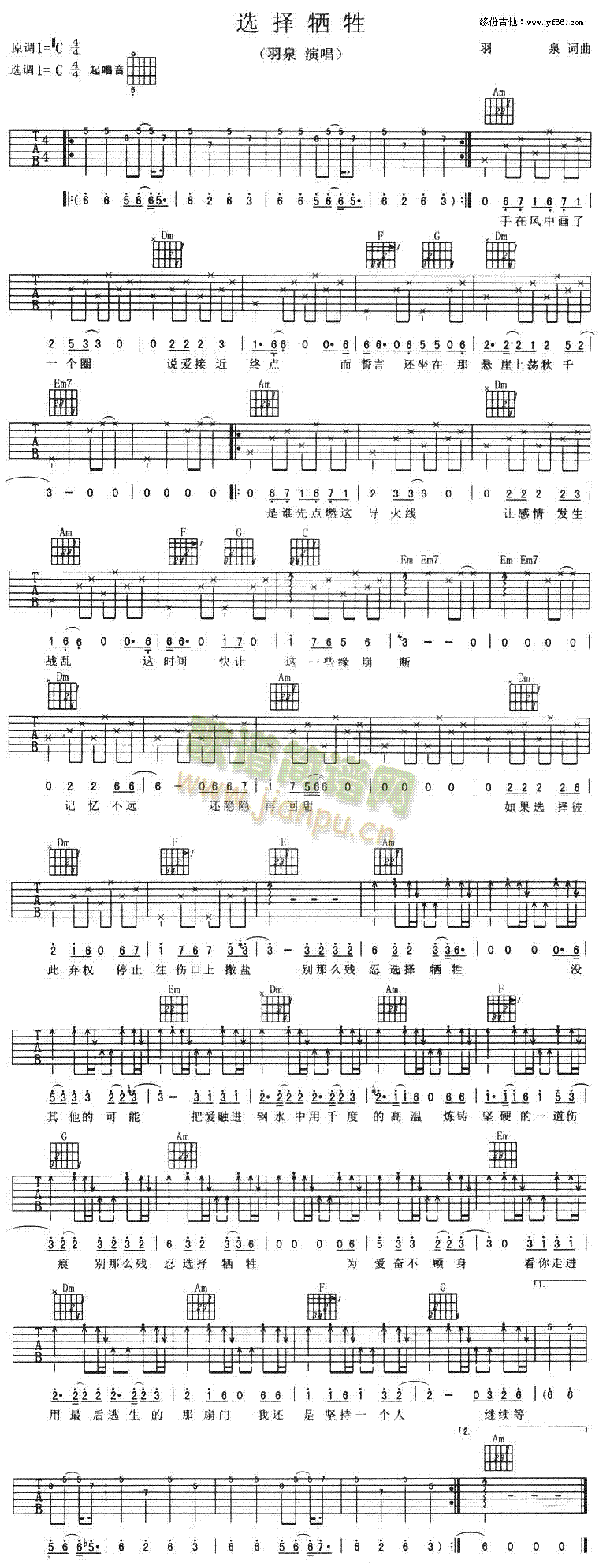[吉他谱]选择牺牲 羽·泉