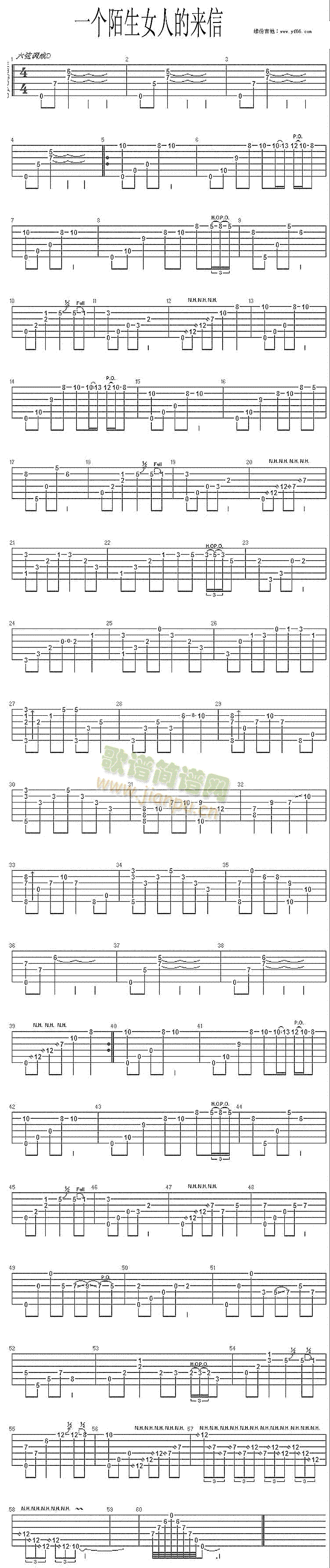 [吉他谱]一个陌生女人的来信(独奏曲) 未知