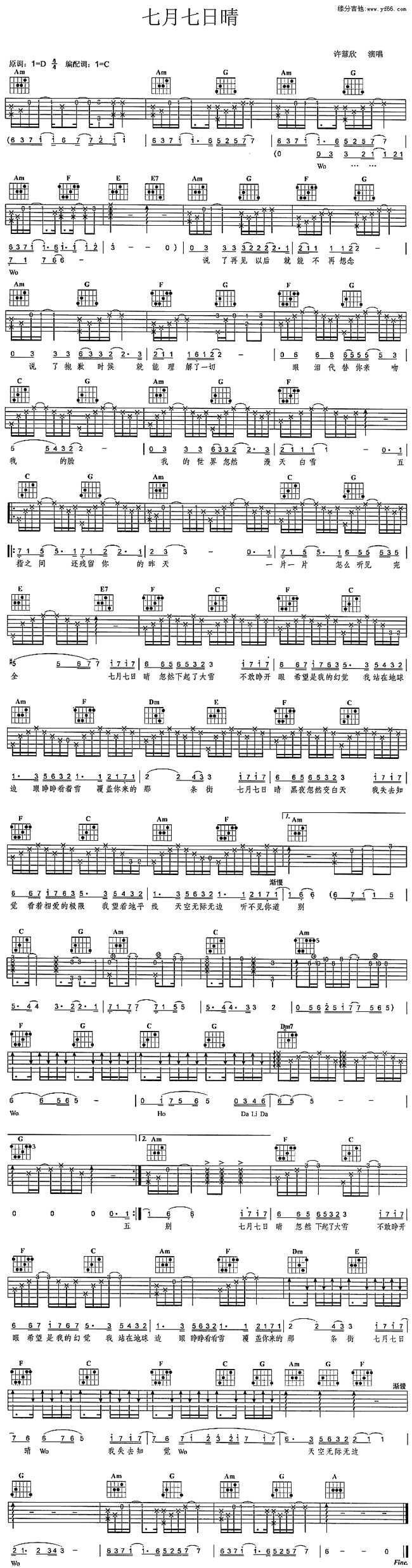 [其他乐谱]七月七日晴 歌曲类 钢琴伴奏谱 许慧欣