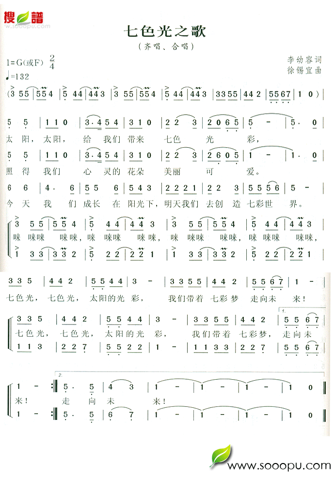 [五字歌谱]七色光之歌(电视栏目《七色光》主题歌)