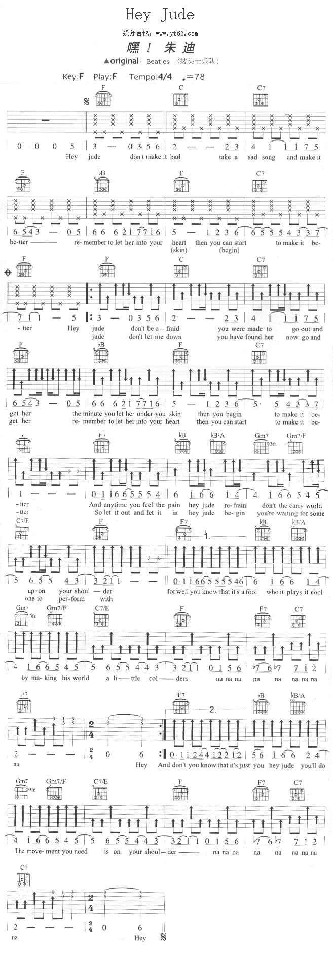 [吉他谱]Hey Jude(嘿 朱迪) Beatles
