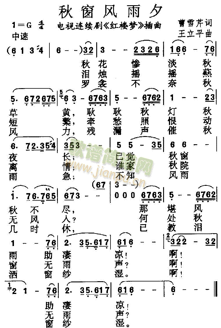 [五字歌谱]秋窗风雨夕(《红楼梦》插曲)