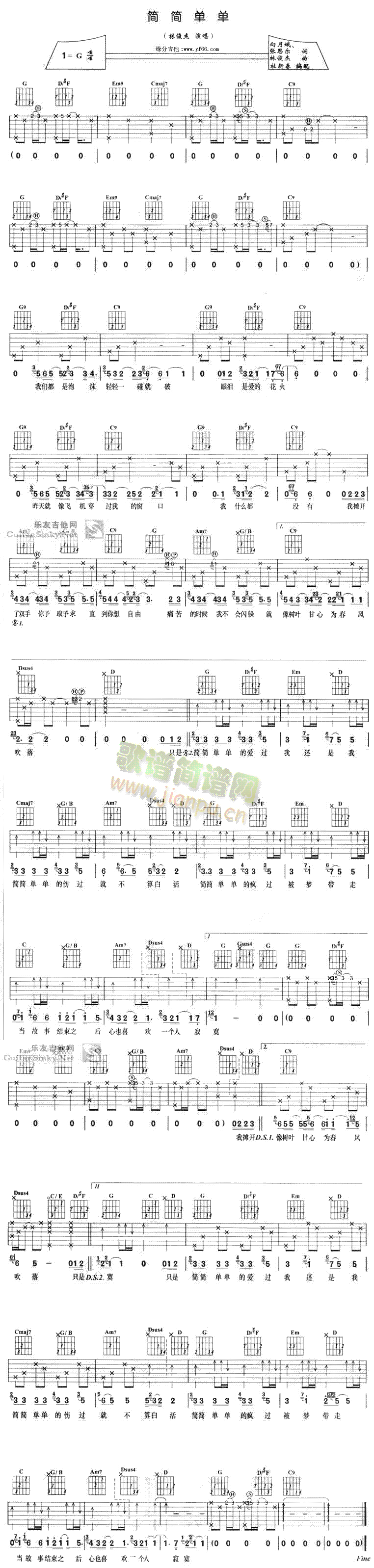 [八字歌谱]简简单单-林俊杰 林俊杰