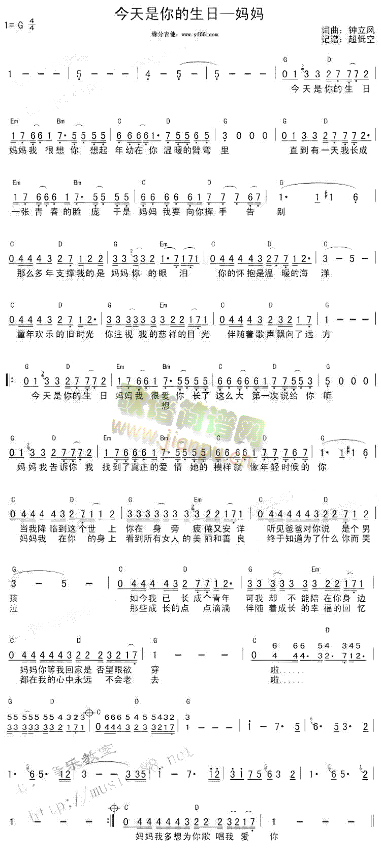 [吉他谱]今天是你的生日,妈妈—钟立风 未知