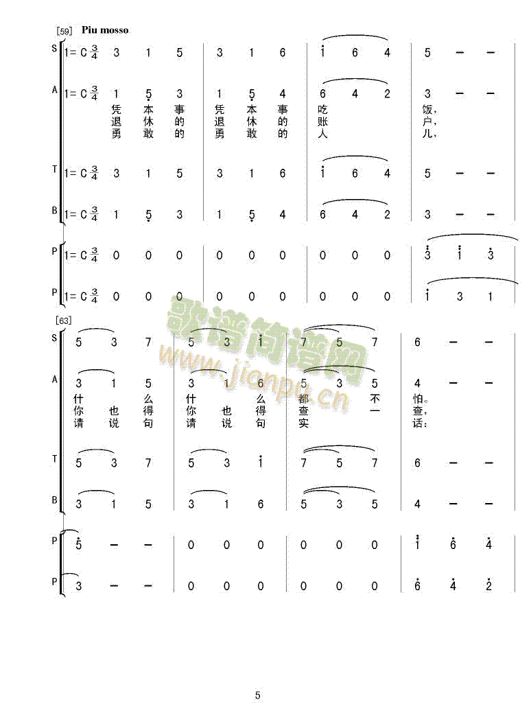 [五字歌谱]打工走四方[合唱曲谱] 未知