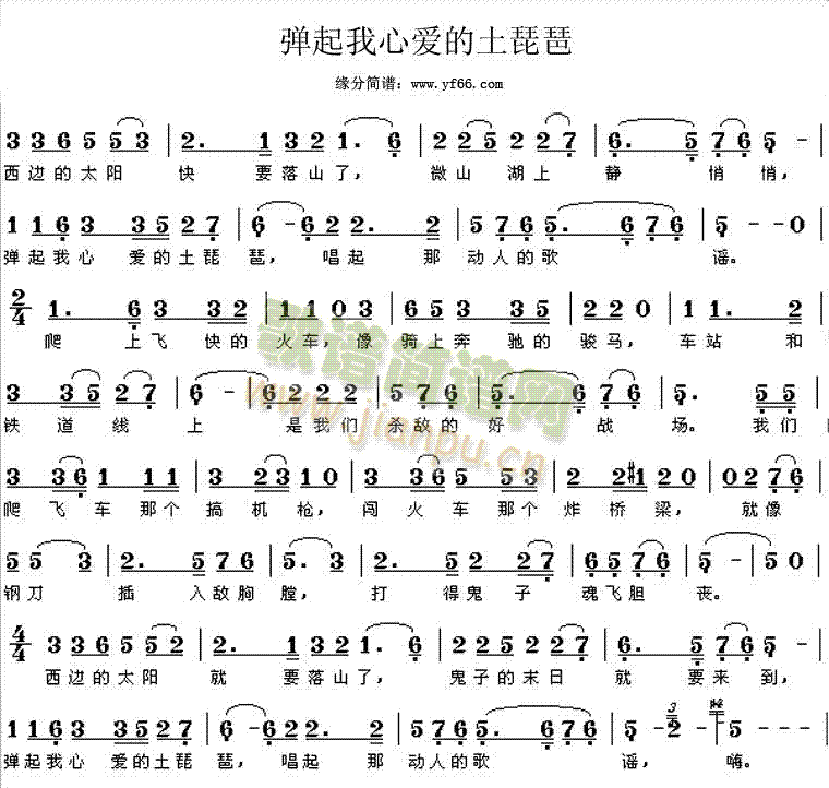 [九字歌谱]弹起我心爱的土琵琶(《铁道游击队》插曲)