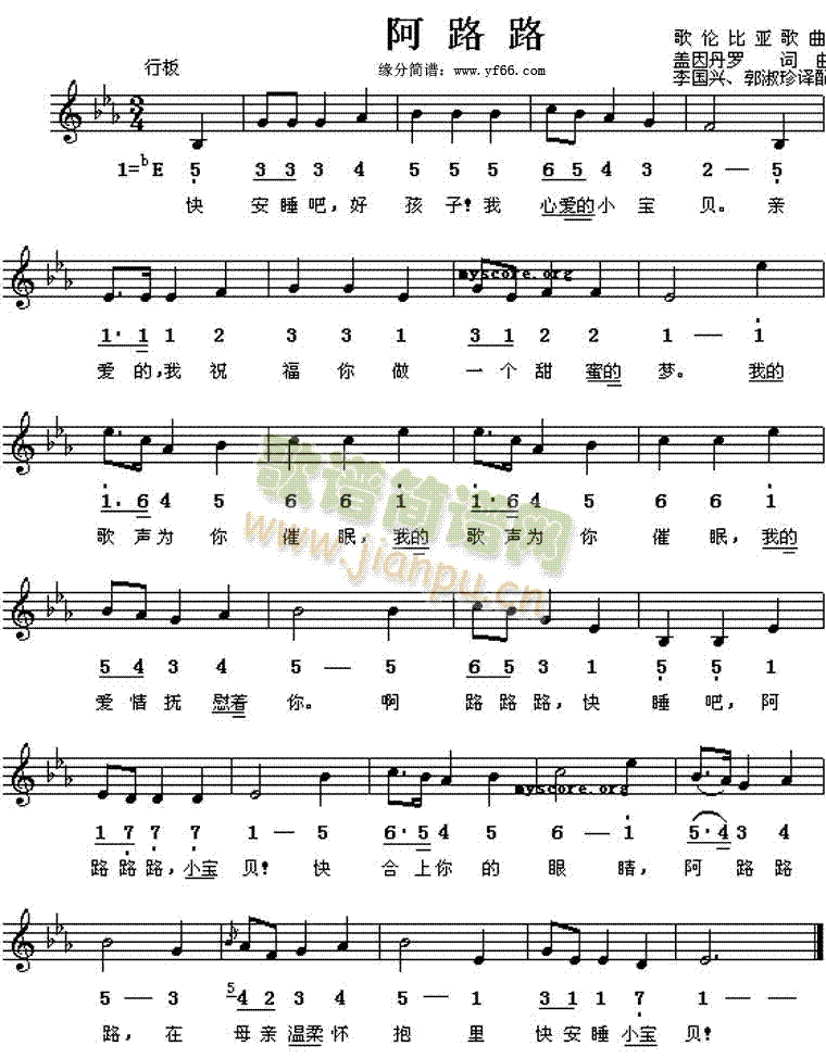 [三字歌谱]阿路路(哥伦比亚民歌) 未知