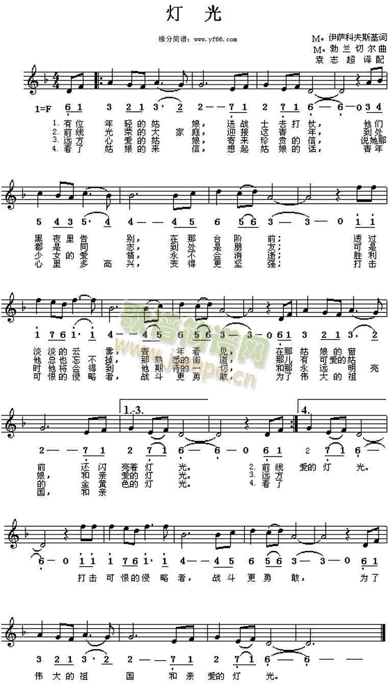 [二字歌谱]灯光 前苏联