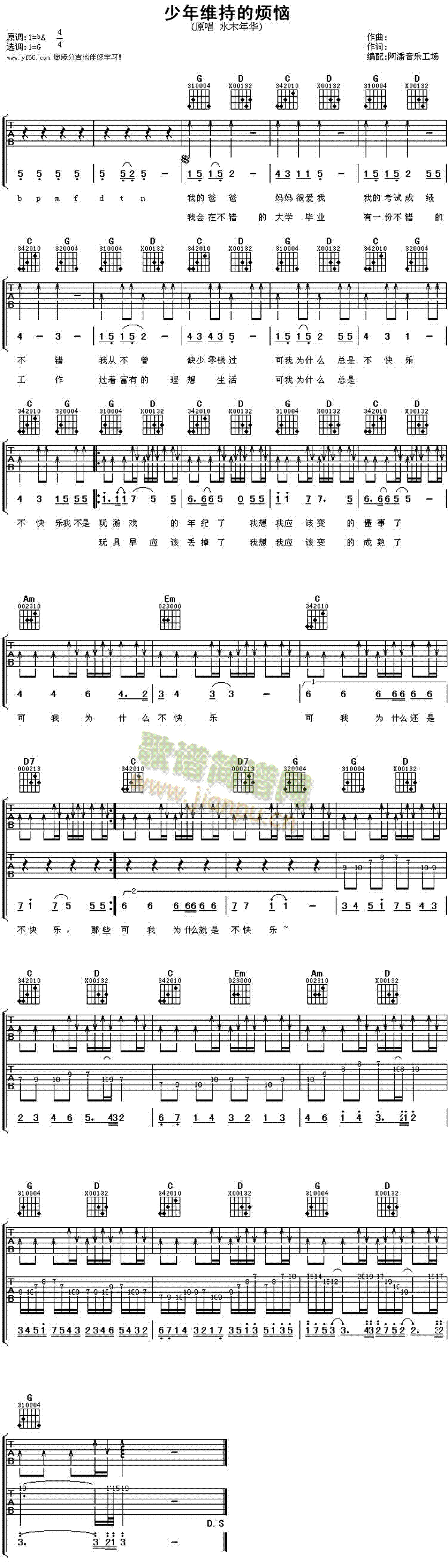 [吉他谱]少年维特的烦恼(吉他谱) 水木年华