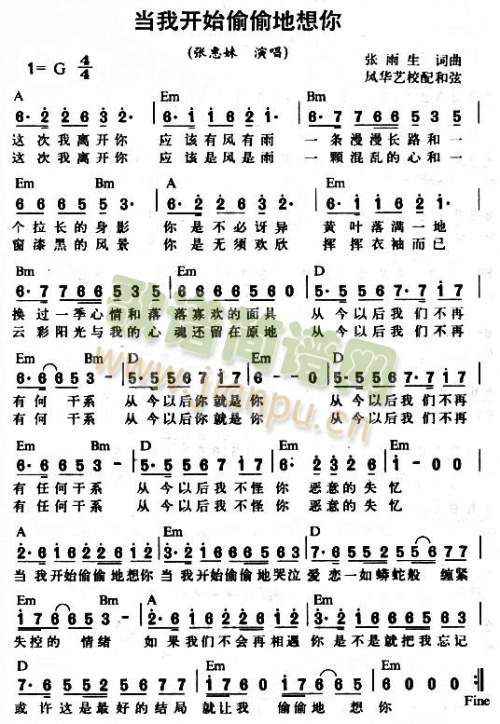 [九字歌谱]当我开始偷偷地想你 张惠妹