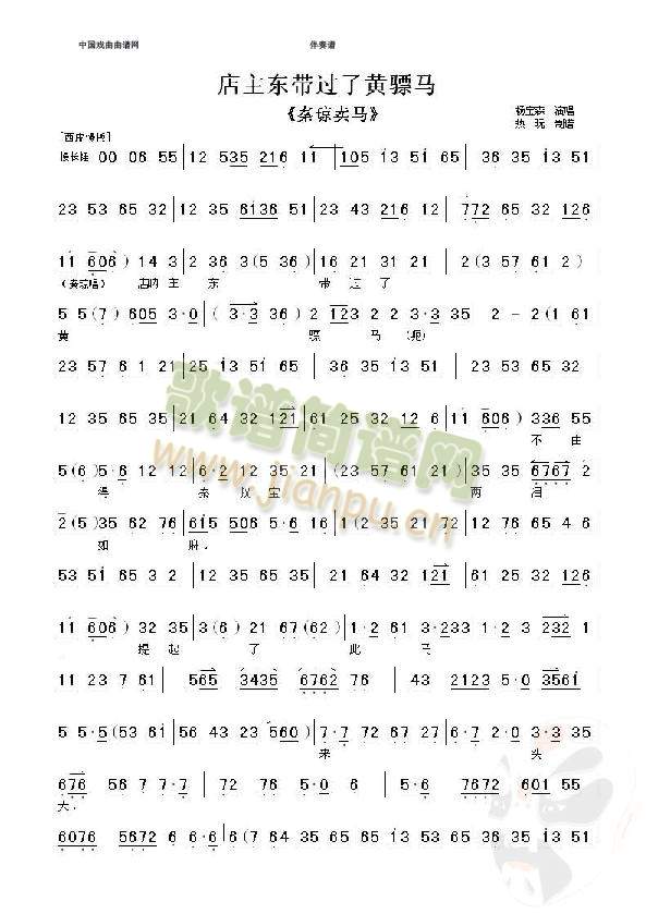 [九字歌谱]店主东带过了黄骠马《秦琼卖马》 未知