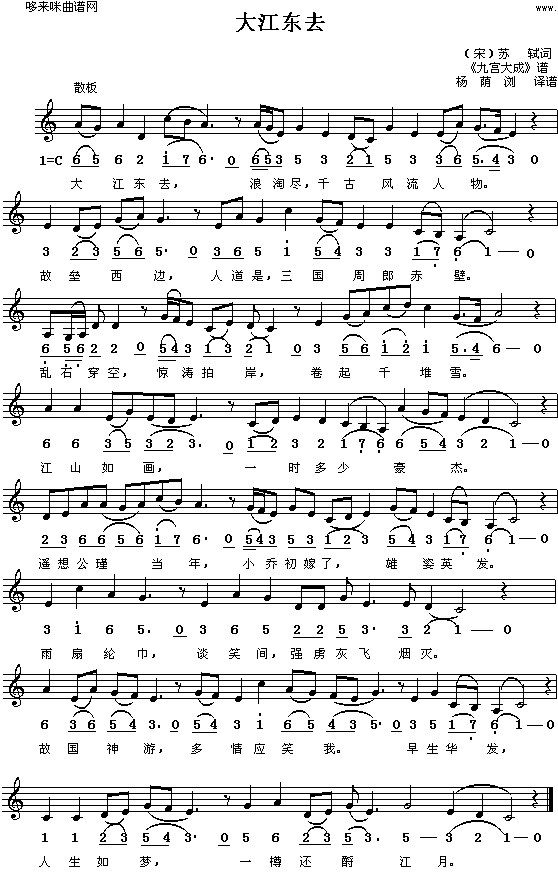 [四字歌谱]大江东去(赤壁怀古) 苏轼