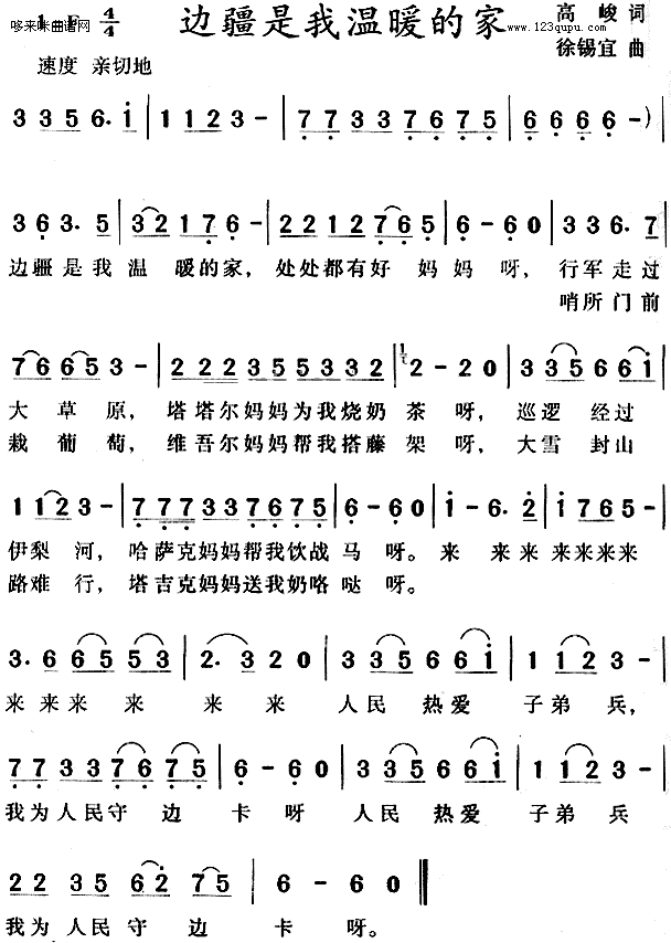 [八字歌谱]边疆是我温暖的家 未知