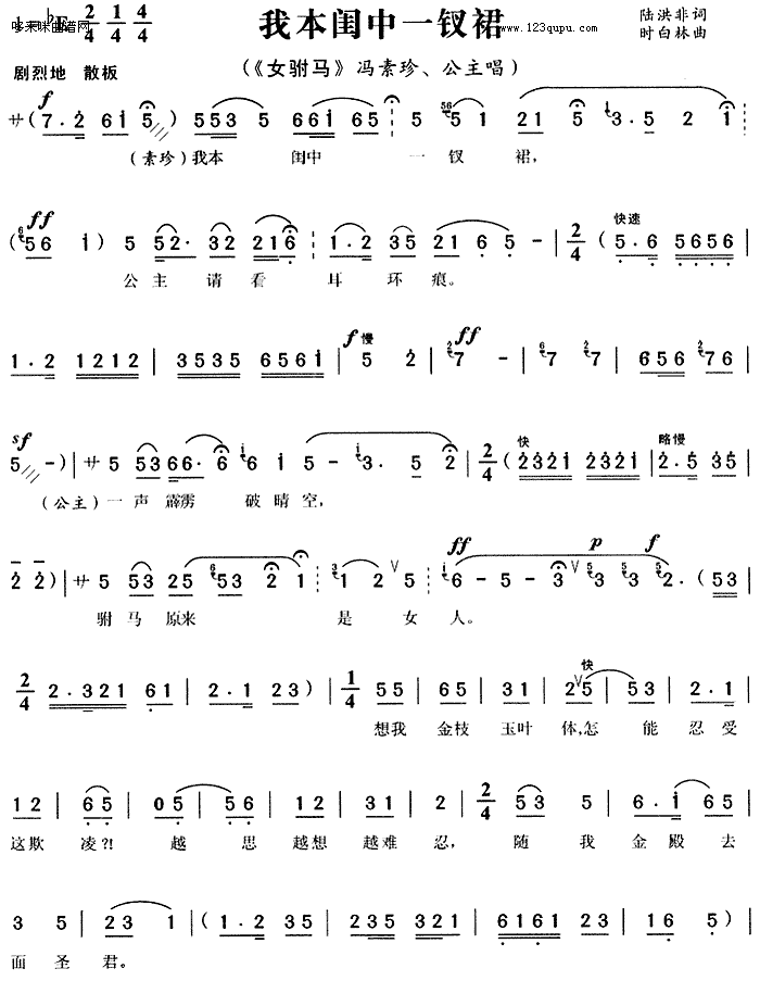 [七字歌谱]我本闺中一钗裙《女驸马》 未知