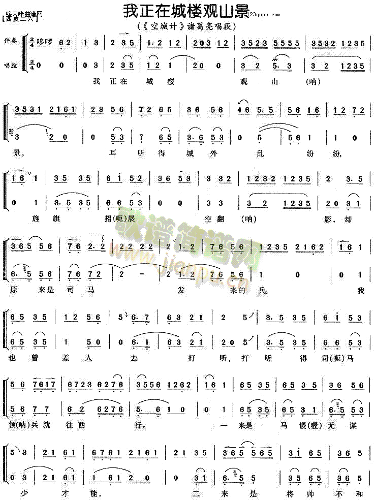 [八字歌谱]我正在城楼观山景《空城计》[戏曲曲谱] 未知