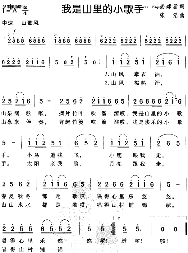 [八字歌谱]我是山里的小歌手(儿童歌)