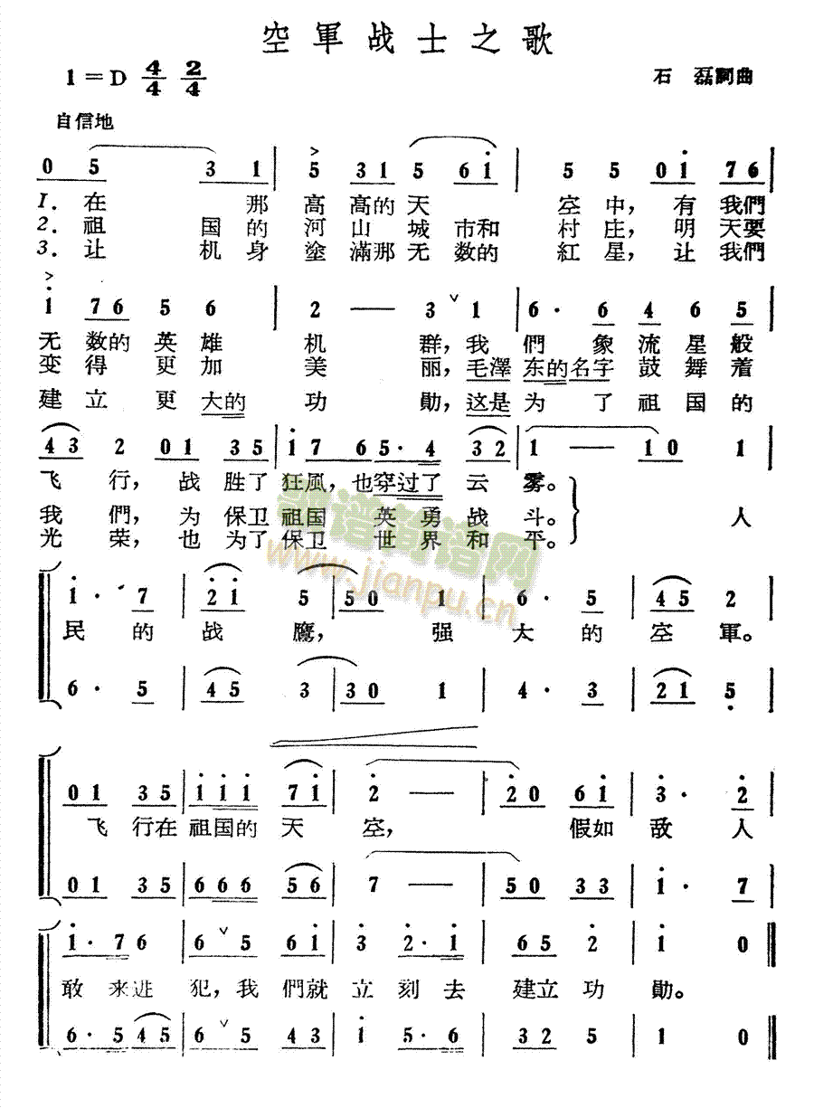 [七字歌谱]中国空军进行曲(五线谱/简谱对照)