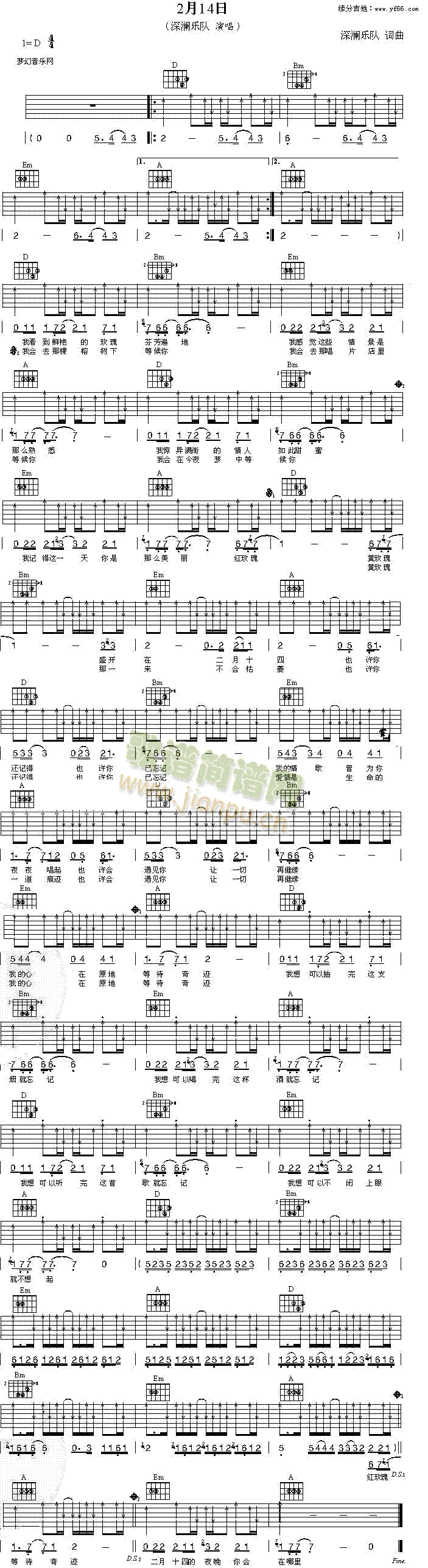 [吉他谱]二月十四(深澜乐队) 未知