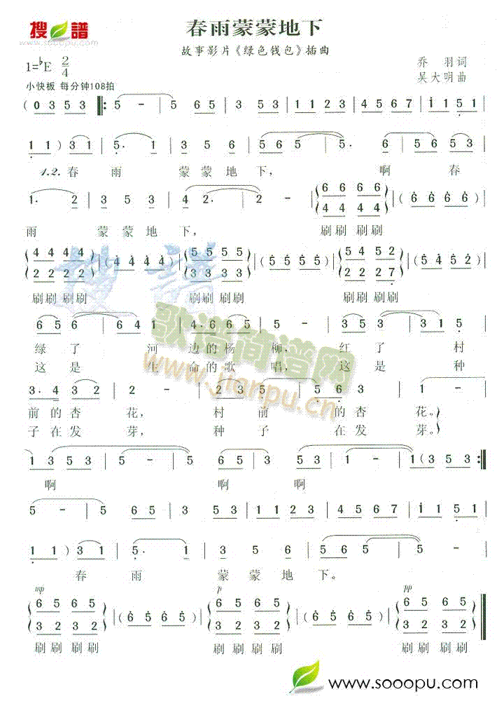 [其他乐谱]春雨濛濛地下 歌曲类 简谱 乔羽吴大明