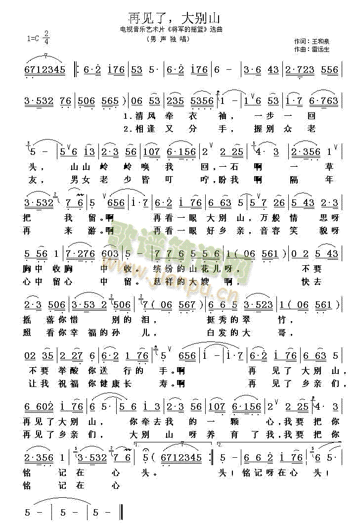 [六字歌谱]再见了大别山(《将军的摇篮》选曲)