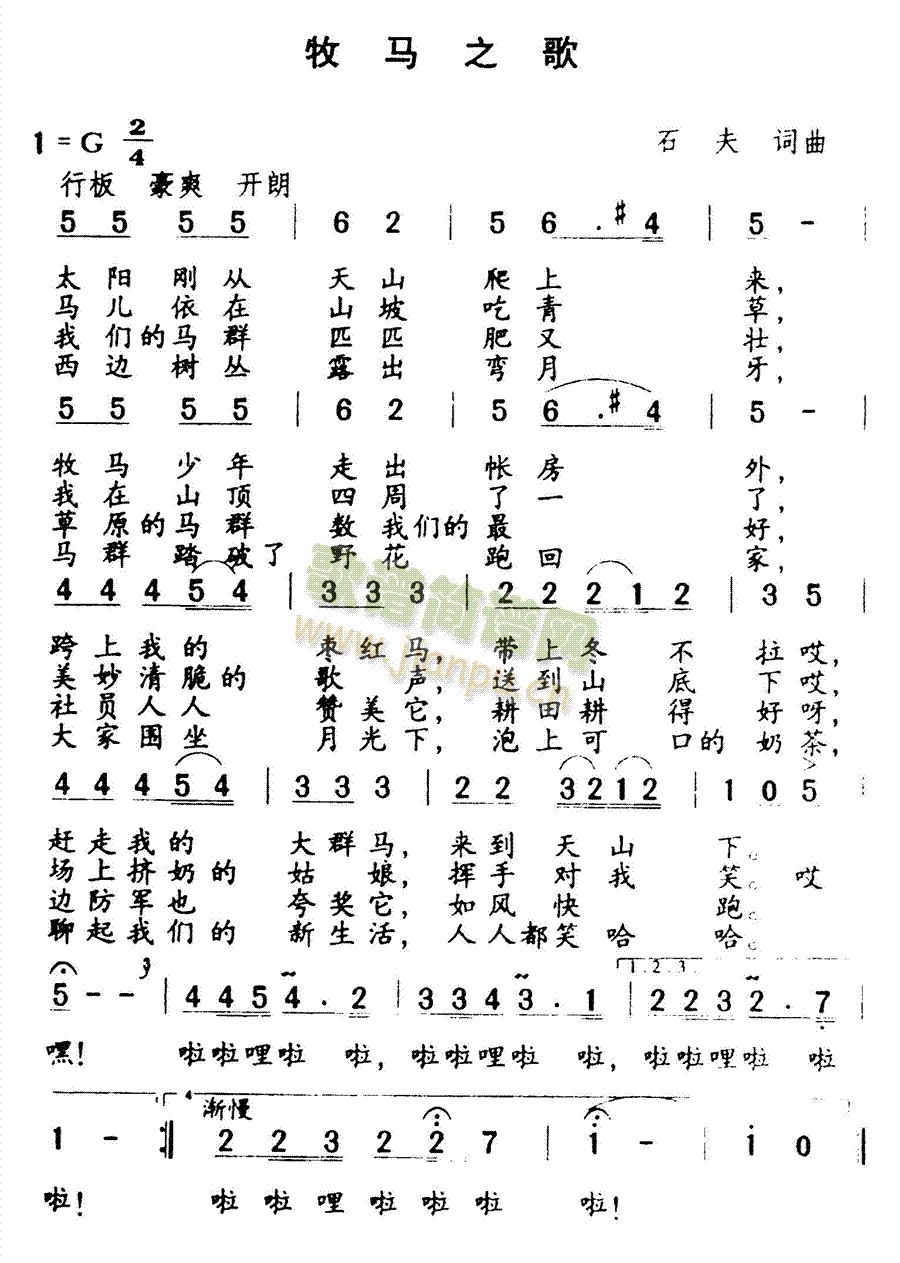 [四字歌谱]牧马之歌(新疆民歌) 未知