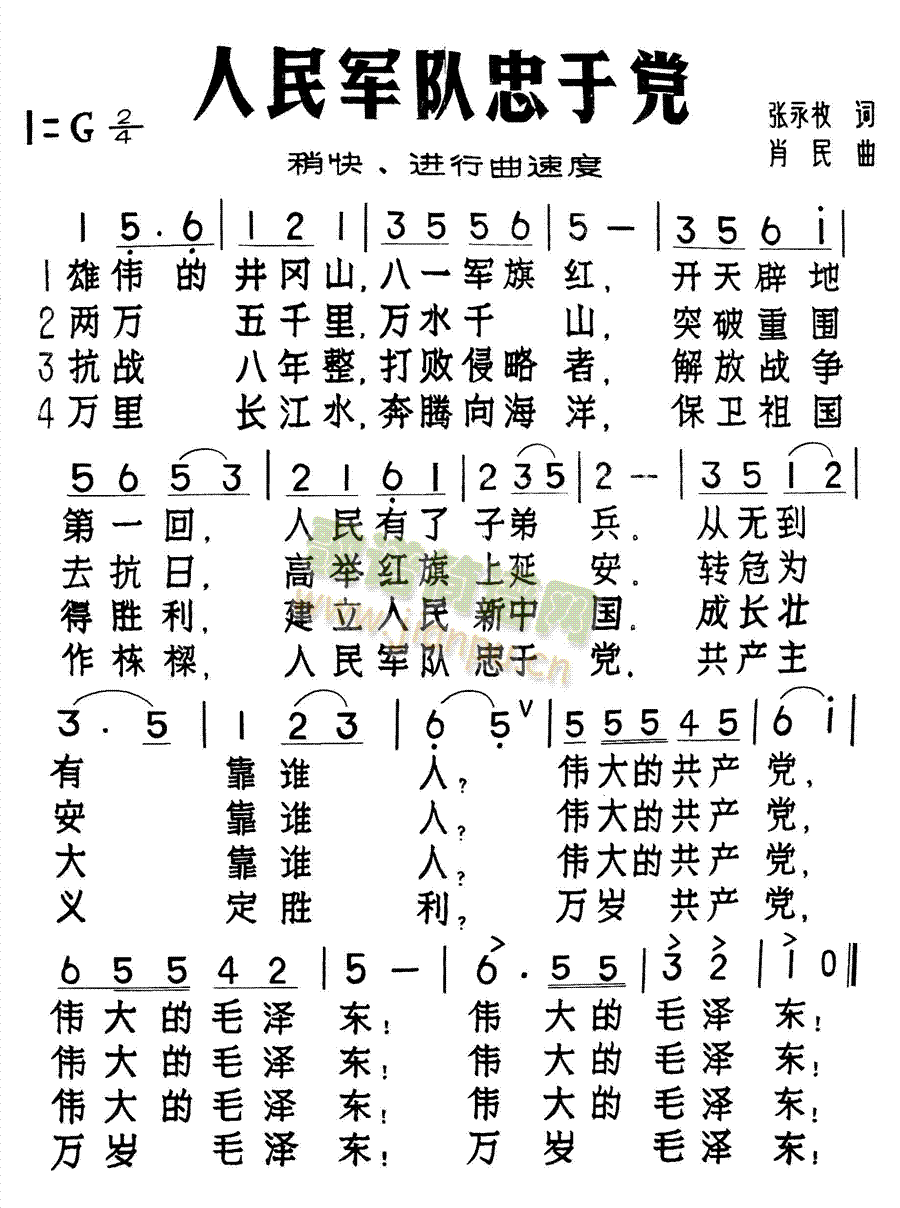 [其他乐谱]民军队忠于党 歌曲类 简谱 张永枚肖民