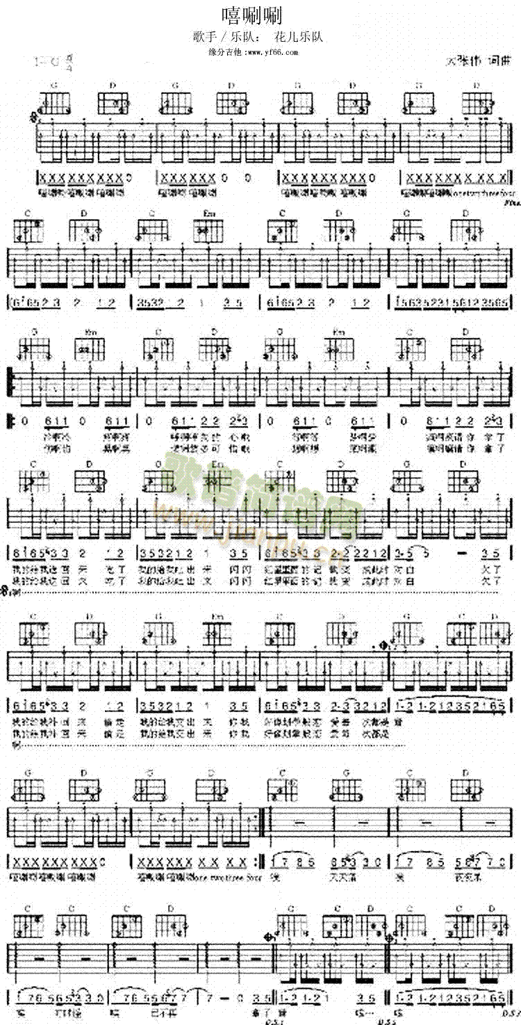 [其他乐谱]嘻唰唰-简易版-弹唱 吉他类 流行 花儿乐队
