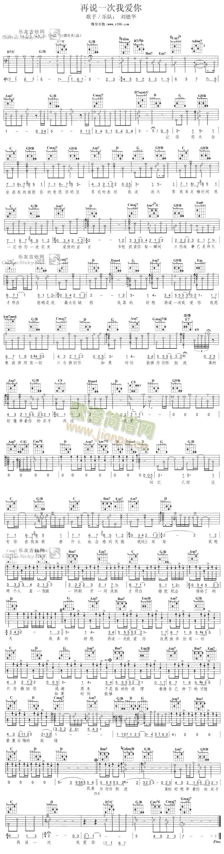[吉他谱]再说一次我爱你 刘德华