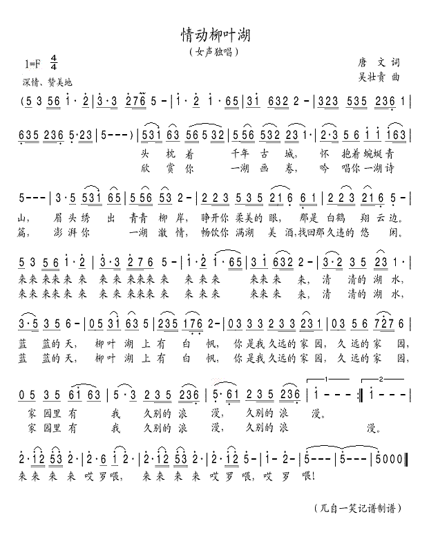[二胡谱]微山湖(《铁道游击队》主题歌)[二胡曲谱] 未知
