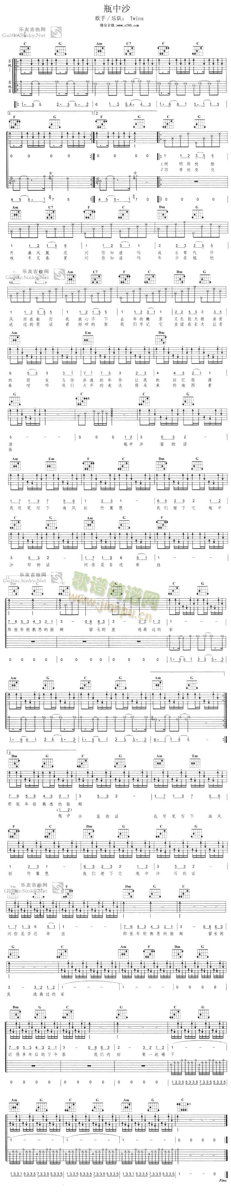 [其他乐谱]瓶中沙-弹唱 吉他类 流行 Twins