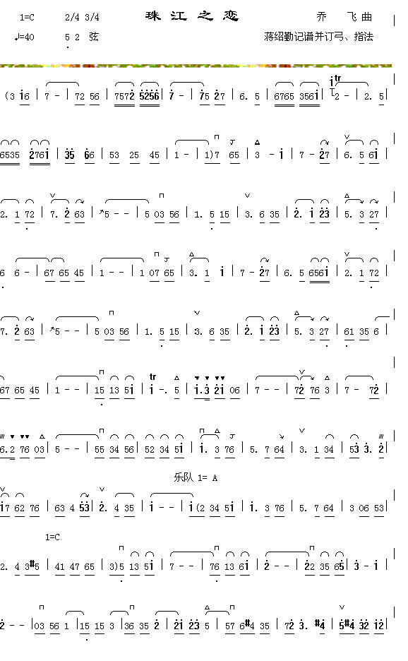 [其他乐谱]珠江之恋 民乐类 二胡 乔飞曲