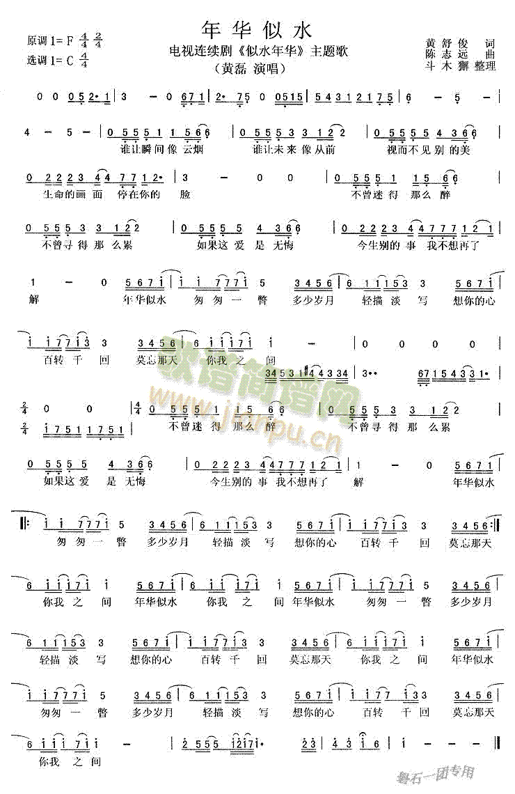 [四字歌谱]年华似水(同名电视剧主题歌)