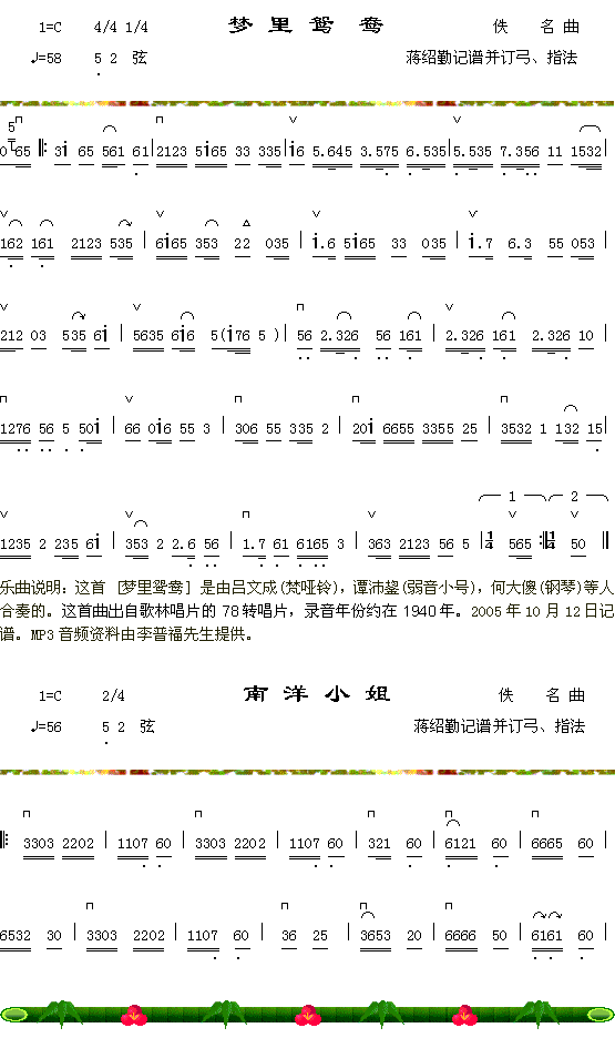 [古筝扬琴谱]梦里花 未知