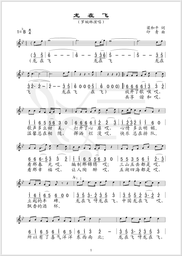 [三字歌谱]龙在飞(五线谱/简谱对照) 罗婉琳