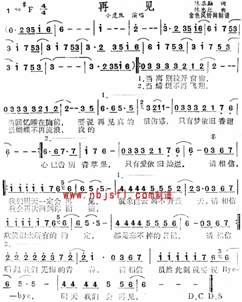 [二字歌谱]再见(和弦标记简谱) 张震岳