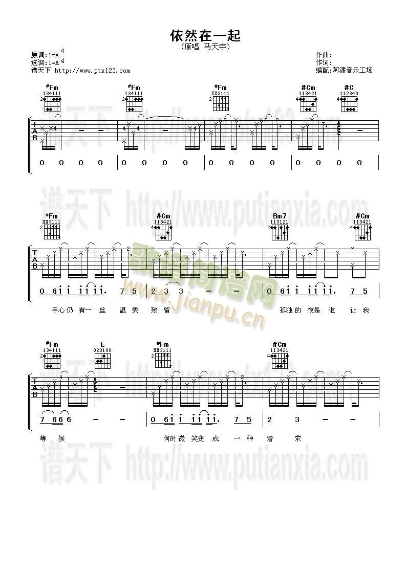 [钢琴谱]依然在一起(钢琴演奏版) 马天宇