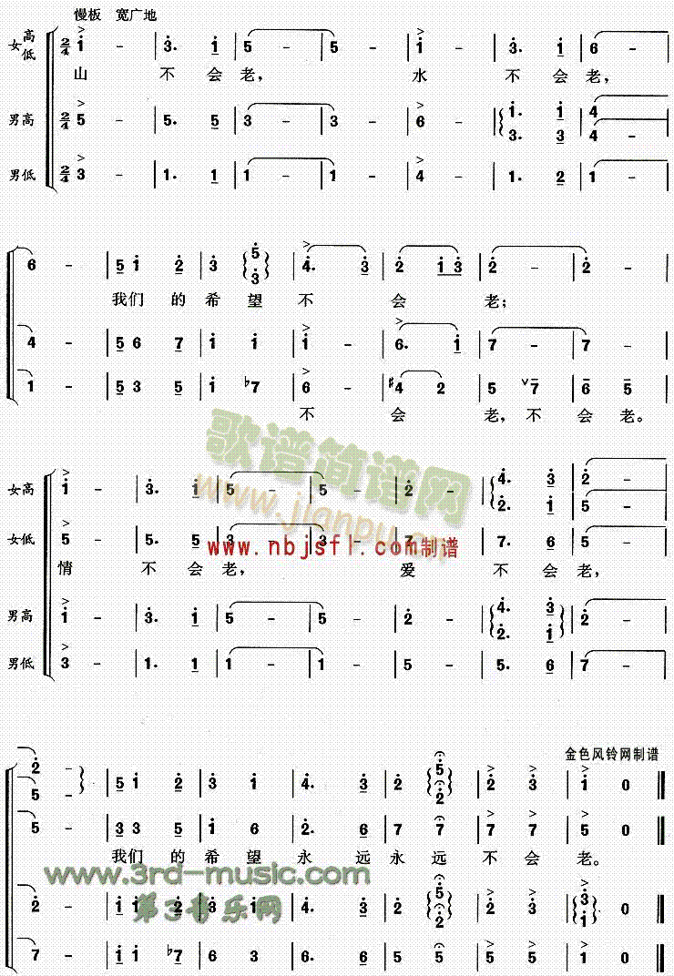 [五字歌谱]不老的希望[合唱曲谱] 未知
