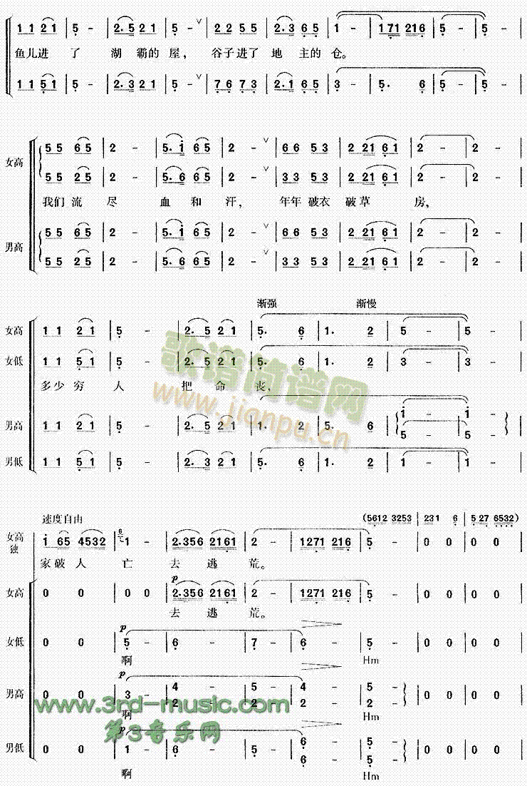 [合唱谱]放下三棒鼓扛起红缨枪(《洪湖赤卫队》选曲)
