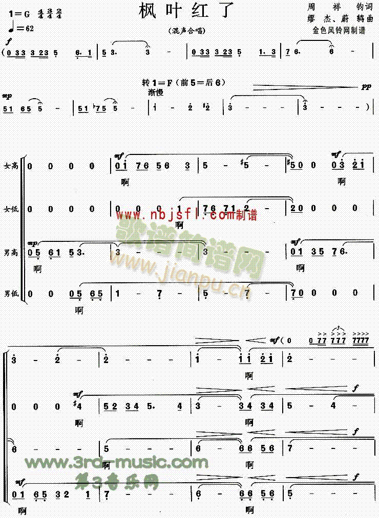 [四字歌谱]枫叶红了[合唱曲谱] 未知