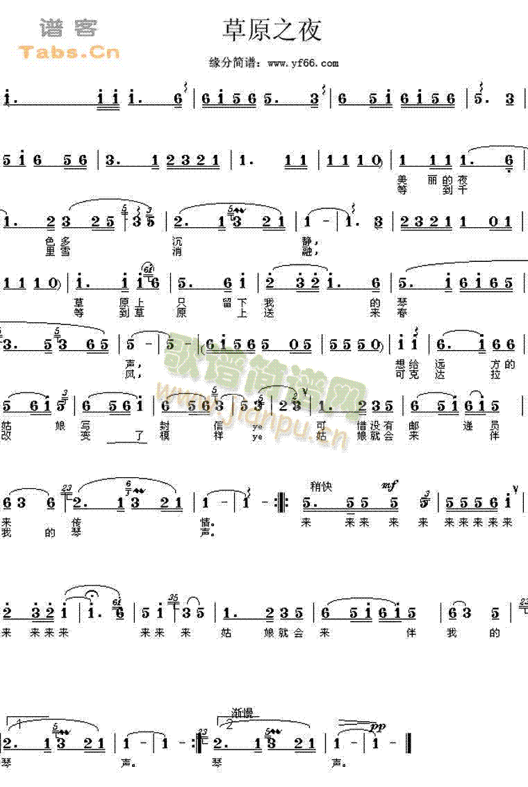 [钢琴谱]草原之夜(《绿色的原野》插曲)[钢琴曲谱] 未知