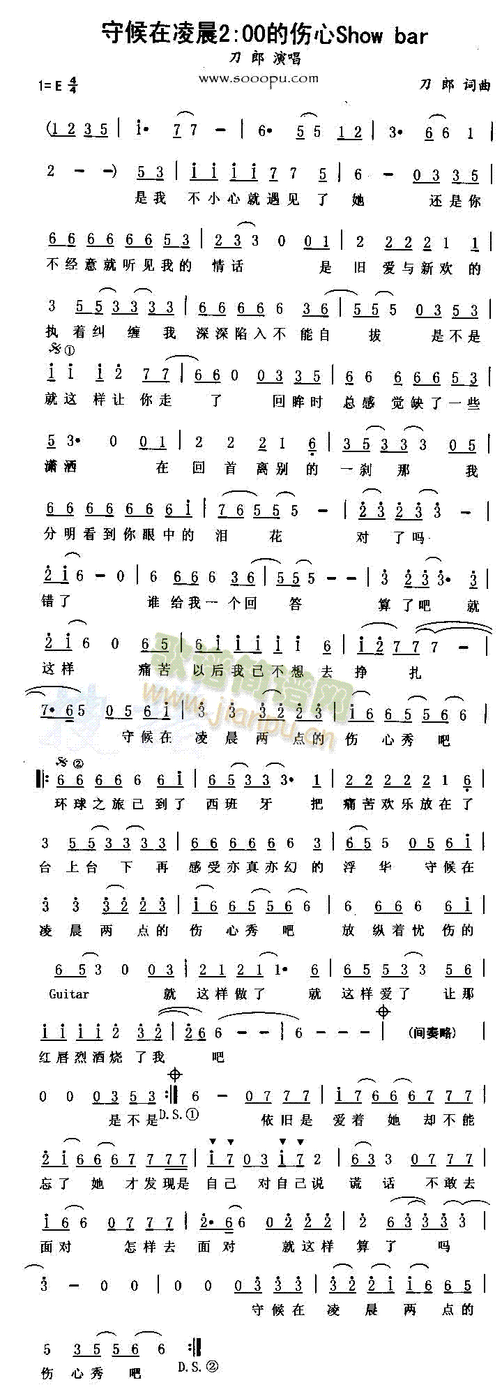 [吉他谱]守候在凌晨两点的伤心秀吧 刀郎