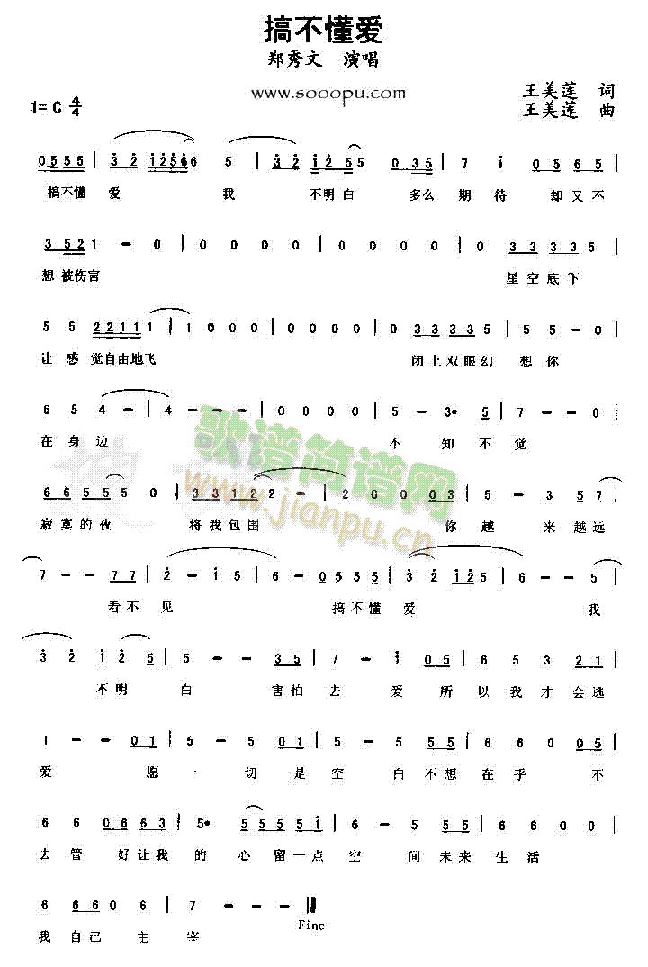[其他乐谱]搞不懂爱 歌曲类 简谱 郑秀文