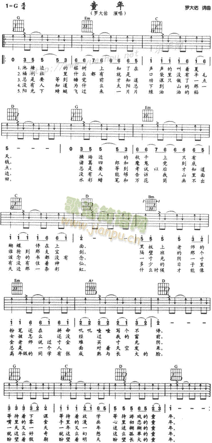 当前位置: 歌谱简谱网 > 二字歌谱 > 童年