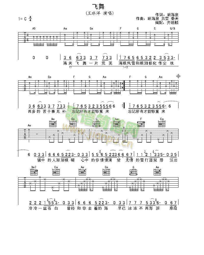 [吉他谱]飞舞 王冰洋